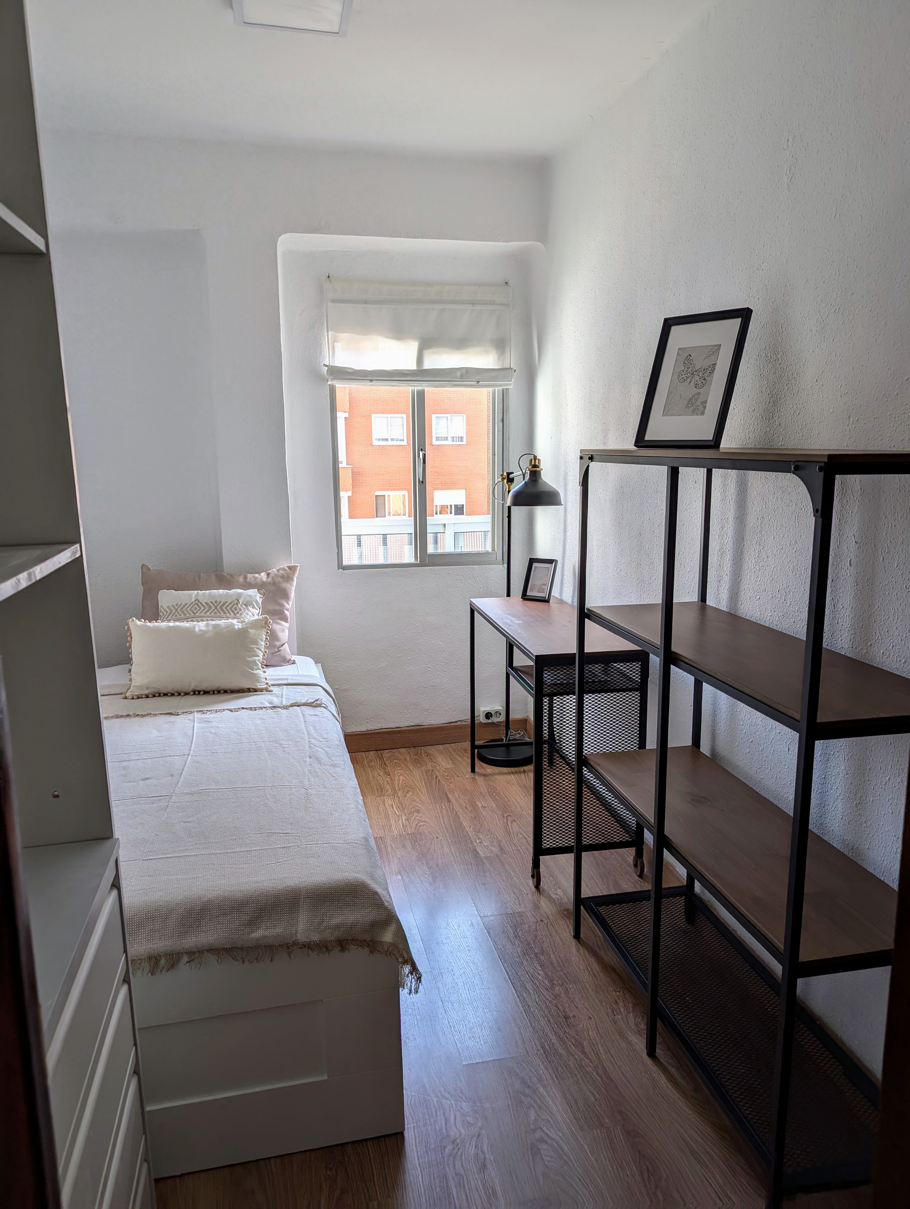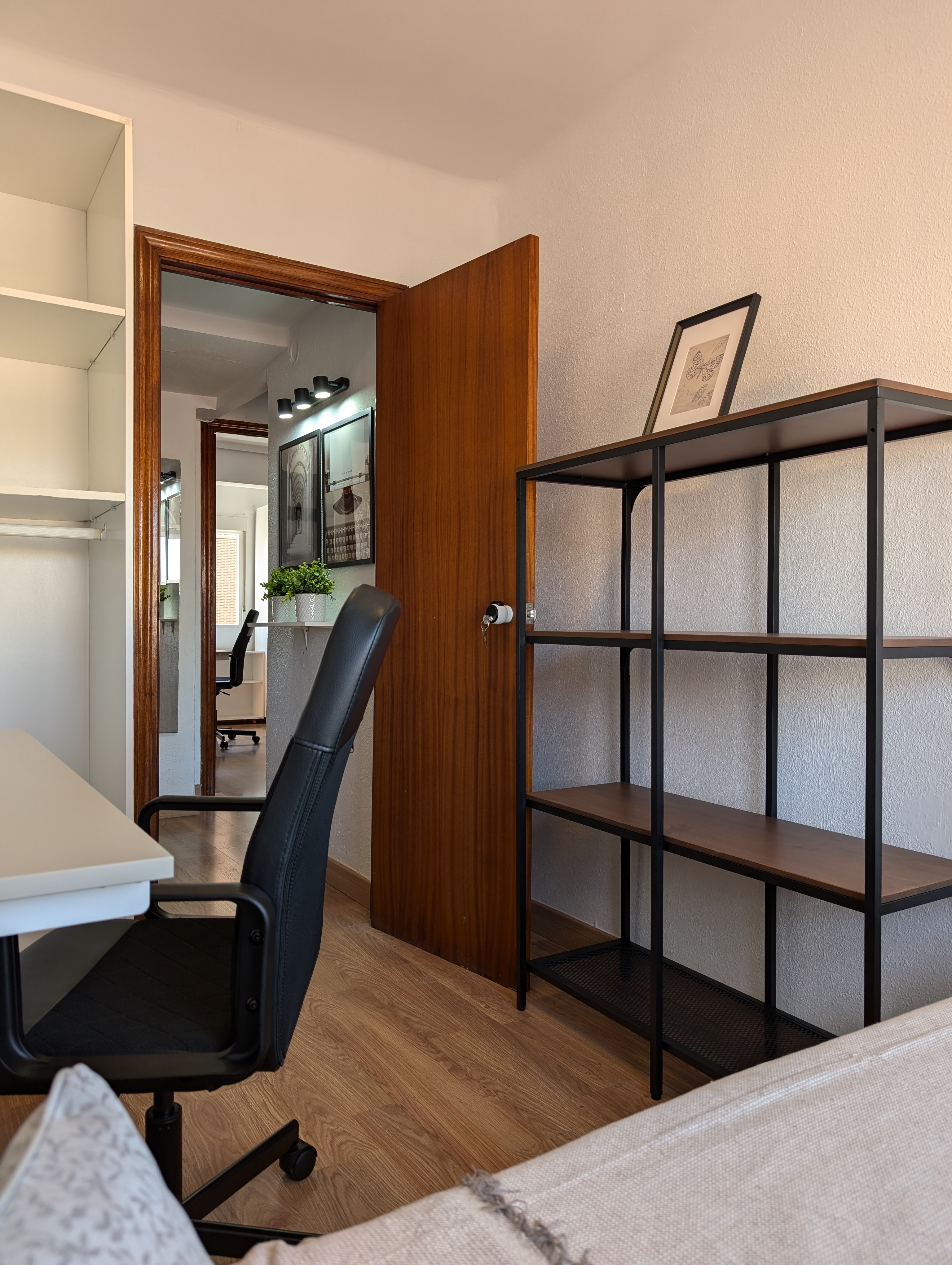 «Enjoy a comfortable, fully furnished room tailored for students, complete with high-speed Wi-Fi and a study-friendly atmosphere, all at an affordable rate in a convenient location (Benimaclet, Valencia).»